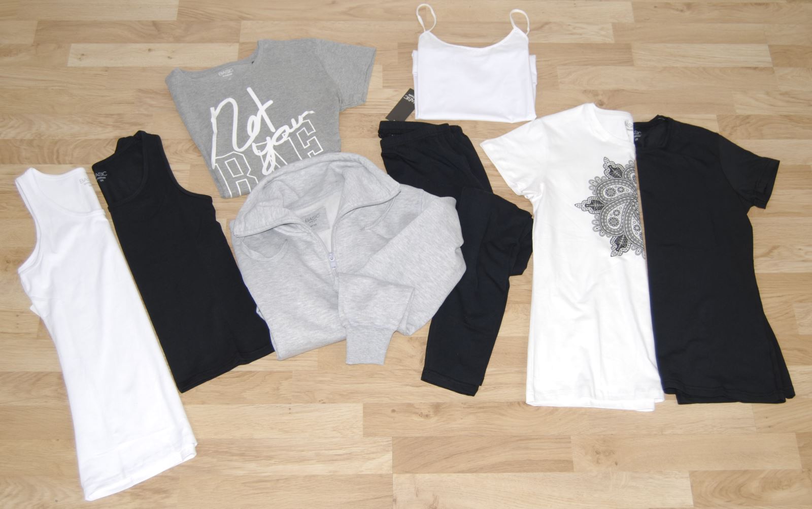 Kollektionen består av ett 70 tal olika plagg och modeller. Joggingtröjor, joggingbyxor, toppar, strumpor mm.